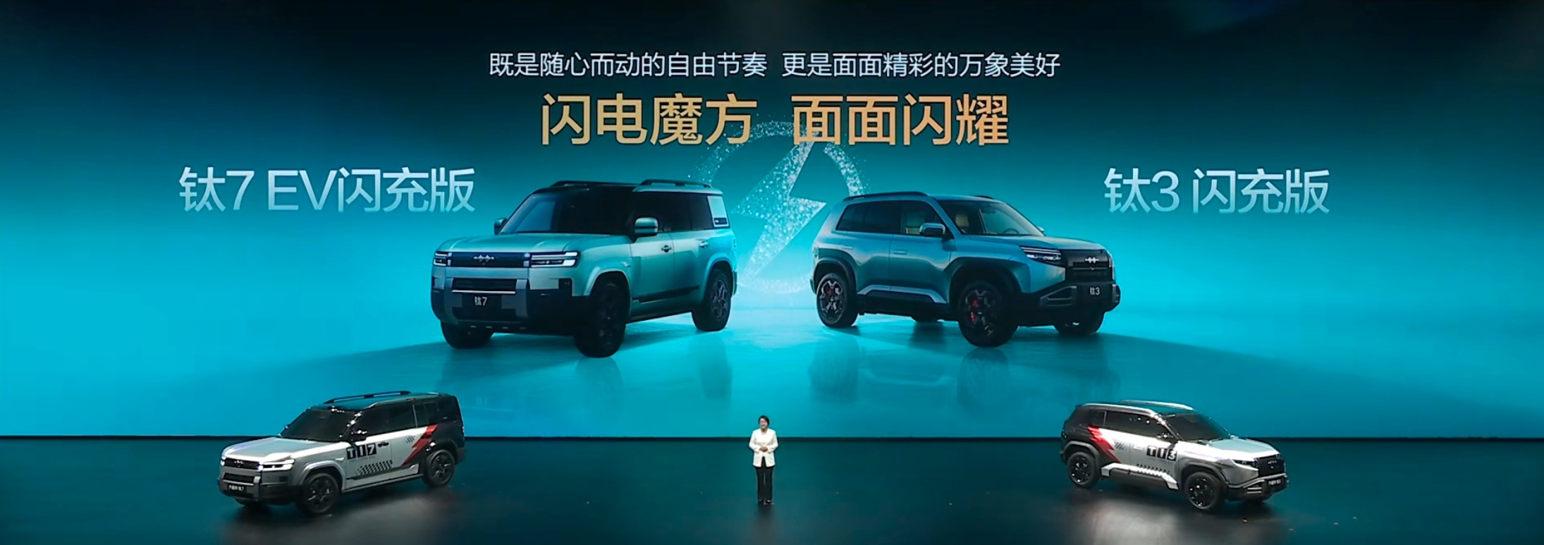 钛3闪充版搭载更大的电池和闪充技术,满电续航直接增加至620公里,能够实现10%到97%充电仅需约9分钟,续航里程迅速充至602公里,让潮流生活自由自在,成为年轻人玩乐出行的最强伙伴。而“全球首款闪充纯电大方盒”钛7EV闪充版,两驱版本的纯电续航更加达到了755 公里,10%到97%的充电时间仅需约9分钟,续航可直接迅速充至735公里。对于家庭用户而言,全家出行也将无需提前规划,告别等待的烦恼,让每一次出游都是尽兴,省时省力更省心。
