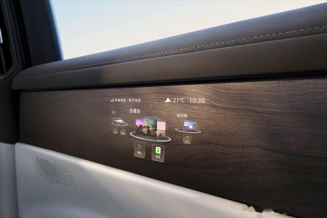 在这里,这块“智能表面”不仅提供显示功能,还支持触控,有点像之前极氪009侧滑门上的Smart Bar设计。