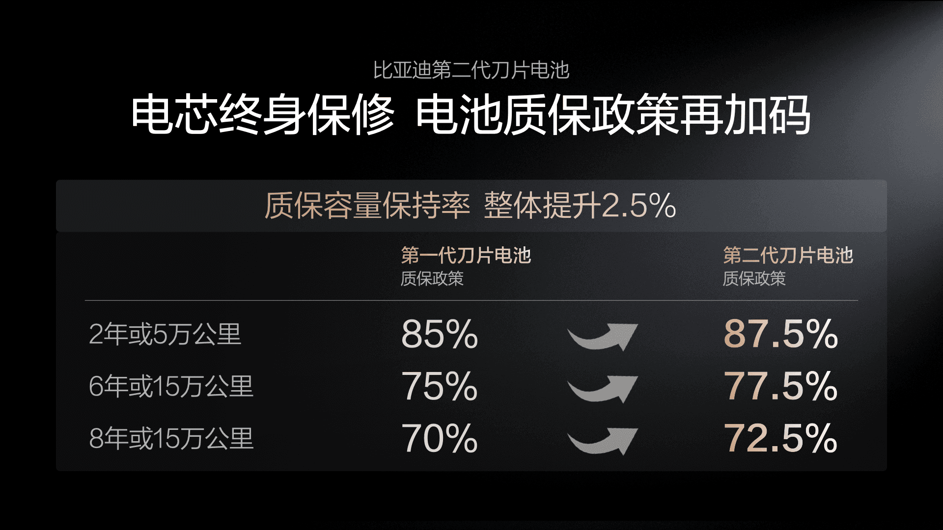 而且它没为了快充牺牲任何东西,能量密度反而比一代还高,续航更顶,电池寿命也没受影响,还把质保升级了,电芯终身保,容量低于77.5%就免费换,硬核闪充技术树立行业新标杆,比亚迪今年销量又稳了。