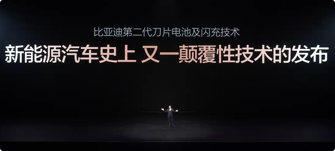 就在这一夜,深圳大运中心体育馆,当比亚迪集团董事长兼总裁王传福站在聚光灯下,发出了震惊行业的宣言,“欢迎大家参加比亚迪第二代刀片电池暨闪充技术发布会,我们今天要发布的是一项颠覆的技术!”