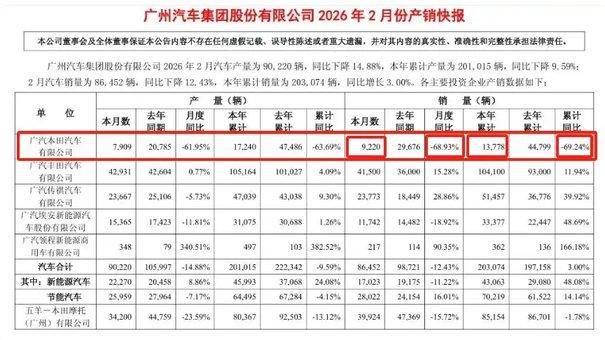 3月2日,广汽集团发布2月份产销快报,其中,旗下合资公司广汽本田销量暴跌,2026年无论是1月,还是2月份销量不足万辆,作为一家合资公司存在感真的有点差了。