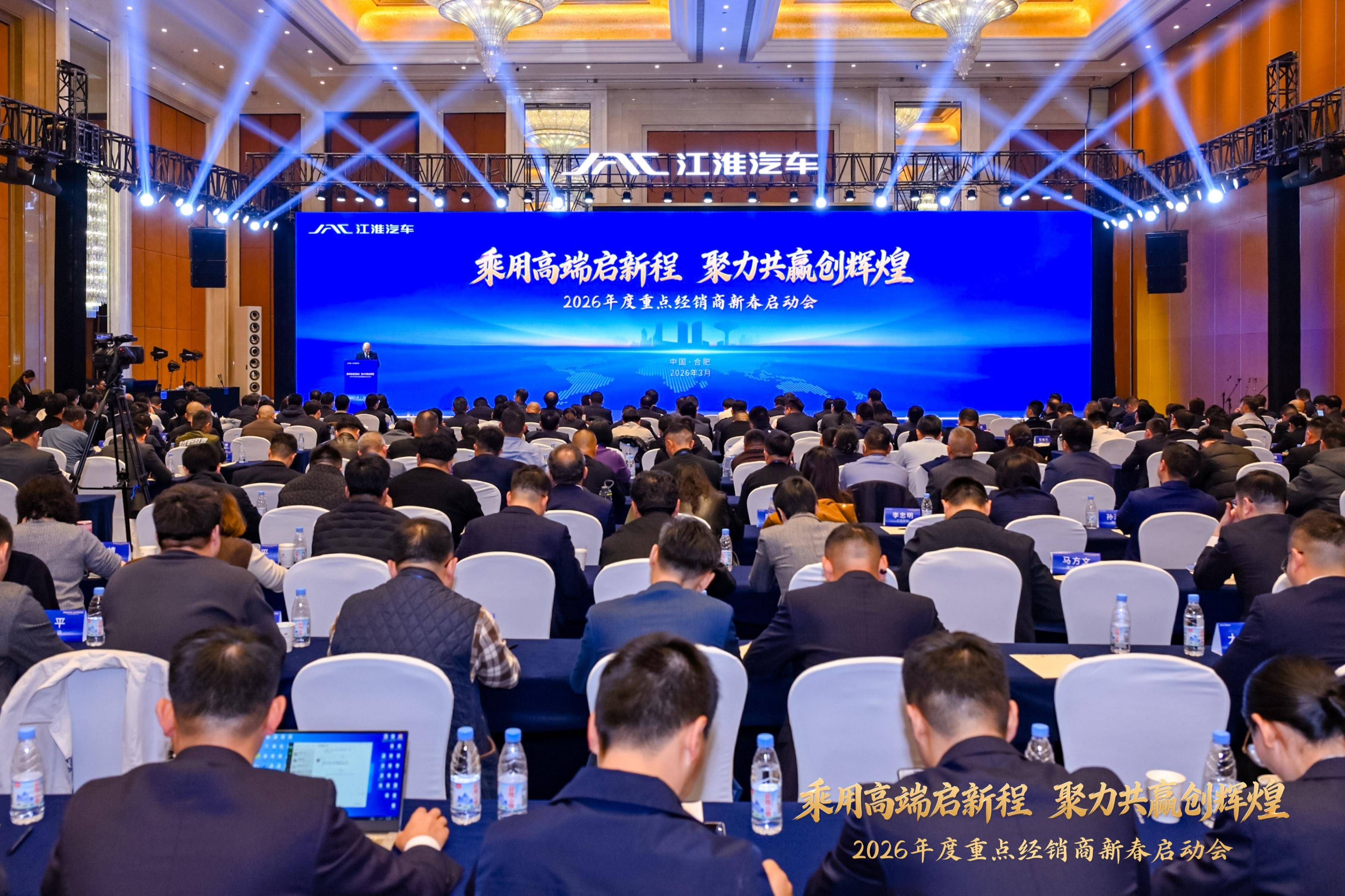 3月6日,江淮乘用车2026年度重点经销商新春启动会在安徽合肥顺利举行。会议以“乘用高端启新程,聚力共赢创辉煌”为主题,系统回顾了江淮乘用车业务2025年的发展成果,深入分析了“十五五”开局之年乘用车行业面临的新形势,明确了未来“乘用高端”的发展战略。会议号召江淮乘用车业务全体员工、合作伙伴们坚定发展信心,坚持高端破局,加速转型发展,深化体系变革,坚决打赢市场攻坚战,推动江淮乘用车“十五五”开好局、起好步。