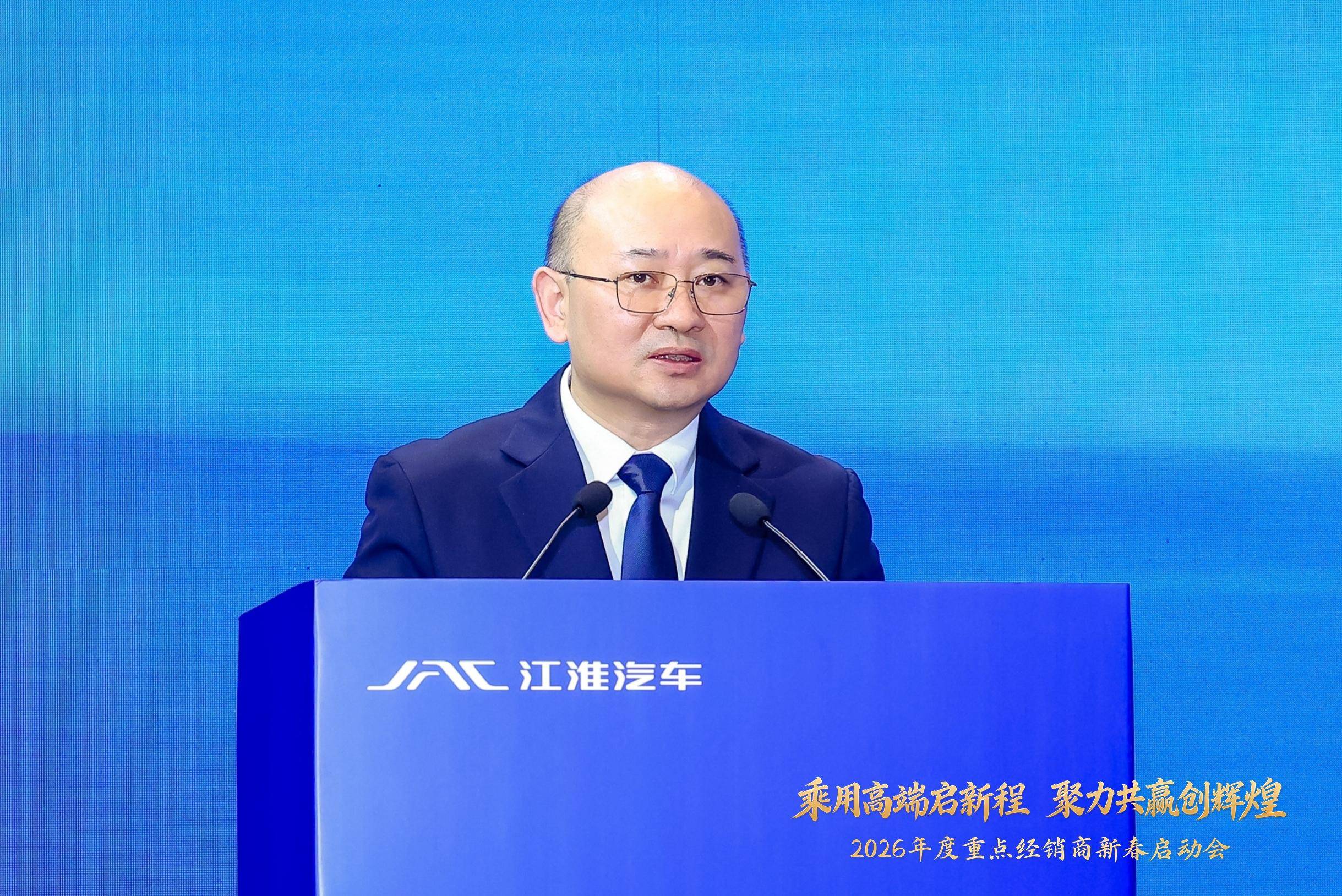 春风浩荡开新局,策马扬鞭启新程。2026年是江淮乘用车乘势而上、突破跃升的关键之年。我们将以更坚定的信念、更务实的作风、更昂扬的姿态,依托流程化组织变革,压实战区责任,打通赋能链路,深化用户价值,系统推进“乘用高端”的发展战略,和所有合作伙伴一起,聚力同行,共赴辉煌!