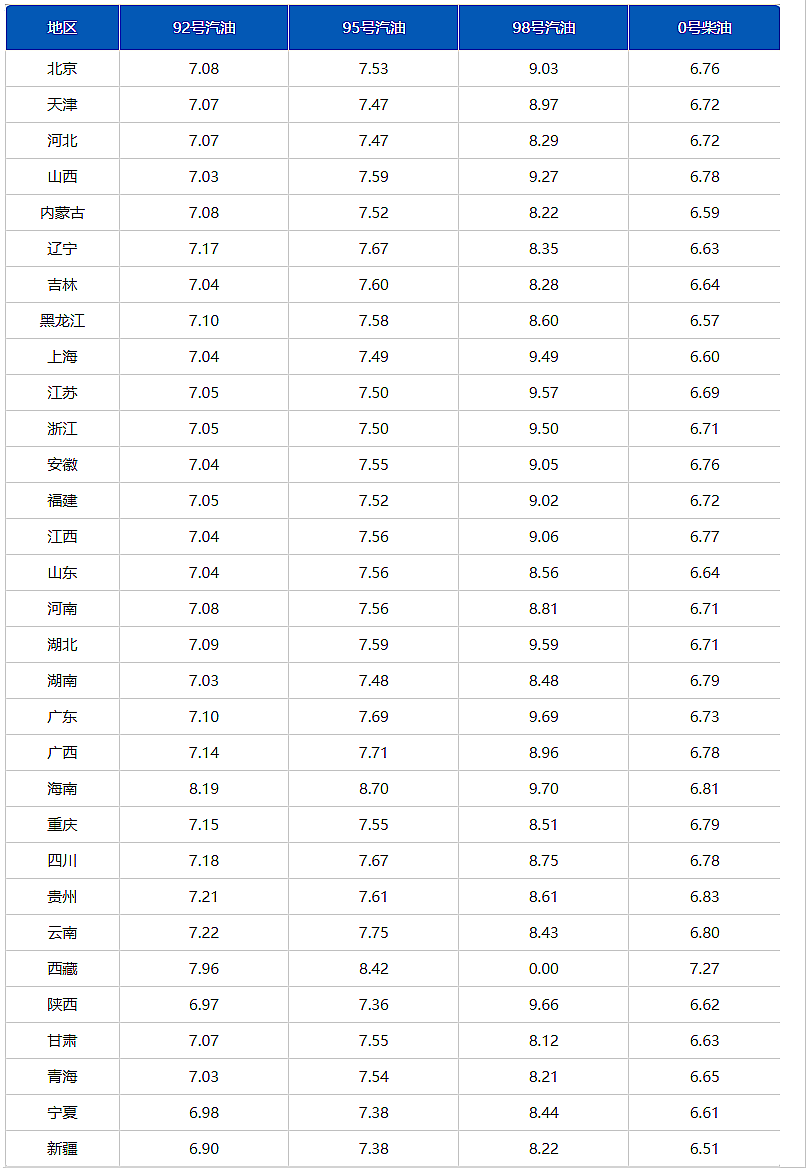 而目前的油价已经站在7元大关,除山西、宁夏和新疆的92号汽油低于7元,其余区域均在7元线之上。95号汽油在7.38~7.69元/升之间。海南、西藏两地的油价较高,92、95号汽油价格均在8元/升以上,但因其道路收费系统的特性,即道路通行费融入油价计算,所以油价依然是正常水平。