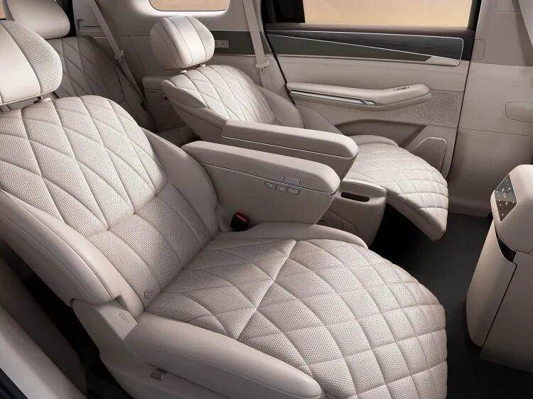 和诸多主打6座布局的全尺寸SUV不同,大唐使用的是2+2+3的7座布局,主副驾配有零重力座椅,二排带有双零压航空座椅,支持一键躺平/零重力模式,包括吸顶屏、二排小桌板、车载冰箱这些也都有。