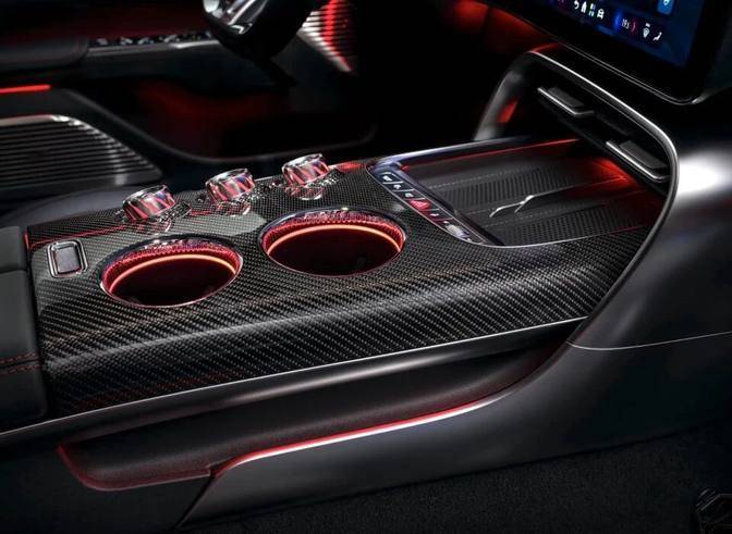 新车中控台中央通道区域,集成三枚全新专属操控按键,可一键精准调节驾控参数,进一步强化赛道操控属性。Response Control按键负责动力响应调控,能快速切换加速踏板反馈灵敏度,适配多元驾驶场景;Agility Control按键专攻弯道操控,可灵活调节转向阻尼与灵敏度,提升过弯精准度与操控质感;Traction Control按键管控车辆牵引力,拥有9档可调级别,能快速调整介入幅度,适配湿地、赛道等各类路况。