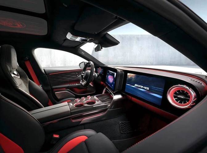 近日,梅赛德斯-AMG正式公布全新GT高性能四门跑车的内饰官方图片,这款重磅纯电车型依托专属AMG.EA电动化平台打造,设计深度承袭AMG GT XX概念车精髓,动力层面搭载轴向磁通电机,整车最大功率有望突破1000马力,据业内消息透露,新车大概率于2026年正式发布。