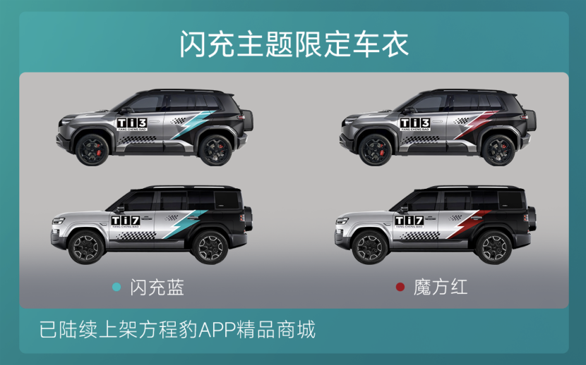 汽车圈也有自己的“潮流单品”,方程豹钛3闪充版可以说是2026年最值得买的A级纯电精品车。颜值上,6款车色、2种内饰、2款专属轮毂以及25套的官方潮改方案,用户可以自由组合超过600种不同的外观搭配。同时,钛3闪充版还将带来新的内外饰颜色,将于3月13日正式发布。全新钛系列还现场发布了新的限定版潮改车衣,诚意十足。