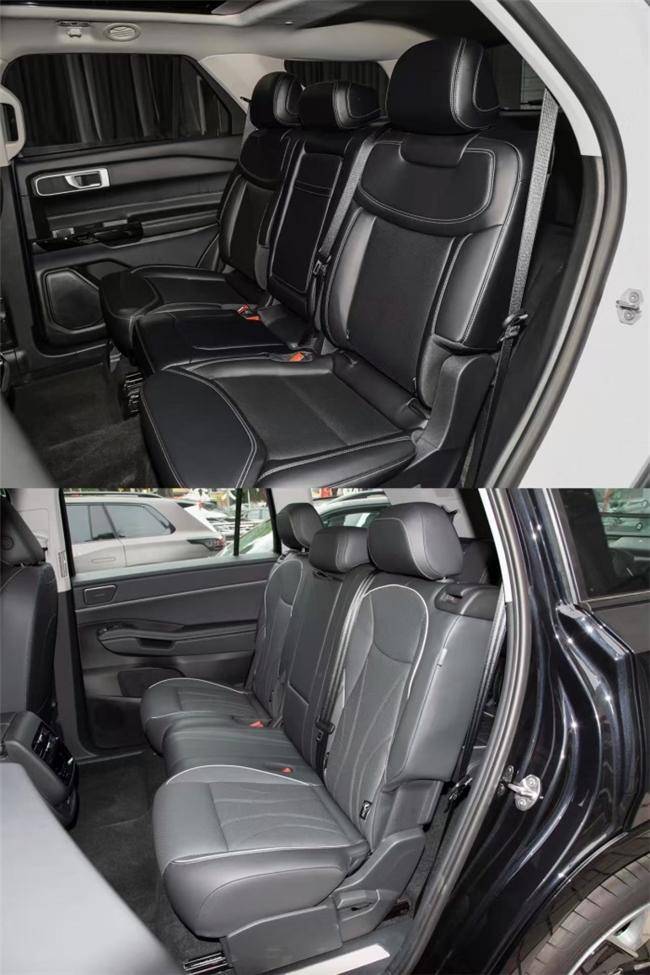 三、空间的“格局”。探险者车长超5米,轴距超3米,二排座椅电动调节,三排座椅电动折叠,提供“真三排”舒适体验。途昂Pro轴距不到3米,二排只能手动前后移,三排仅支持一键放倒(升起还得费劲),空间灵活性和舒适性稍逊色。