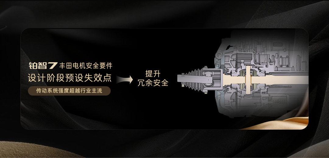 广汽丰田128项全球安全要件,一直引领“新造车体制”的安全变革,且被纳入相关安全法规与标准。华为DriveONE电驱融入丰田安全要件,在设计阶段预设所有失效模式,将传动轴断裂点预设于电驱壳体内部,防止部件入侵乘员舱。