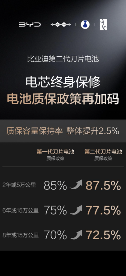 这份技术自信,更体现在加码的质保政策上 —— 容量保持率提升2.5%,低于77.5%免费包换,电芯终身保修,这样的承诺,正是对电池长寿命最直接的佐证。