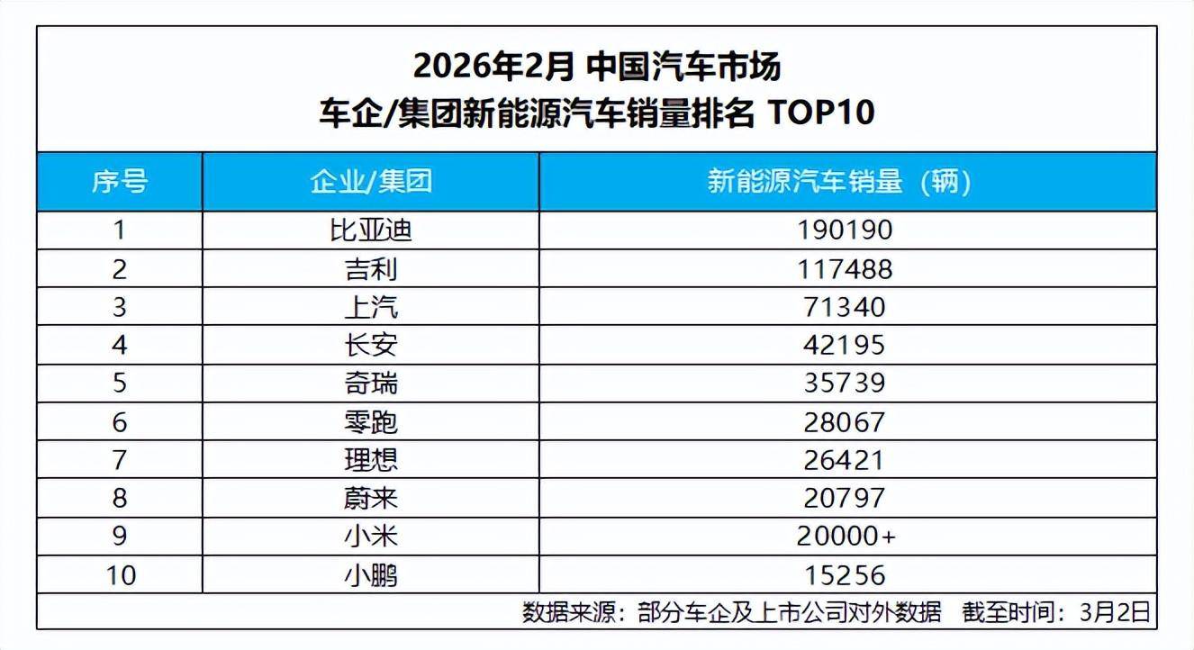 2026年开年,国内新能源汽车行业的竞争格局日渐明朗,比亚迪依旧凭借扎实的销量成绩坐稳行业头把交椅。根据企业公布的最新数据,集团2月新能源汽车销量共计190190辆,再度蝉联全行业销量冠军,在一众主流车企中保持着明显领先优势,靠实打实的市场表现,牢牢巩固着自身的头部站位。