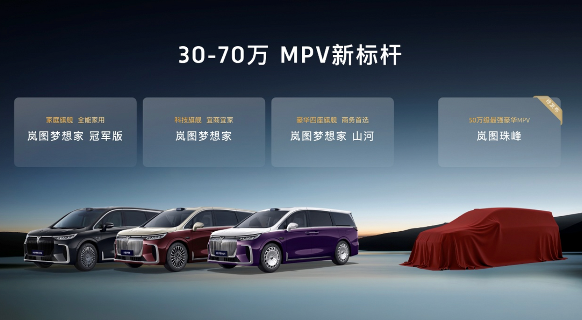 放眼2026年,岚图汽车不仅即将完成港股上市,也将进一步完善高端产品矩阵,尤其是MPV领域,还将带来50万级最强豪华MPV岚图珠峰。