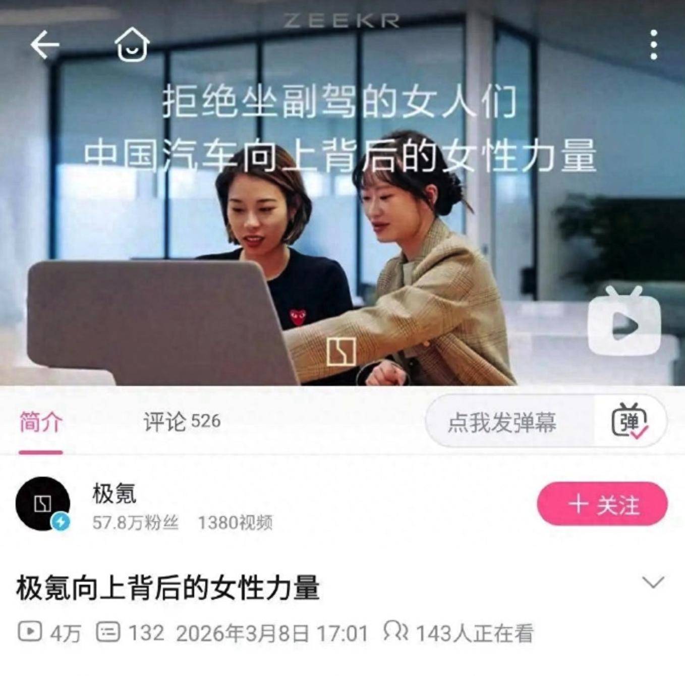 近日,极氪汽车发布了一支主题为“中国汽车向上背后的女性力量”的妇女节视频。按照常规逻辑,在这个节点赞美女性汽车人,本应是一招稳妥且博好感的品牌公关棋。