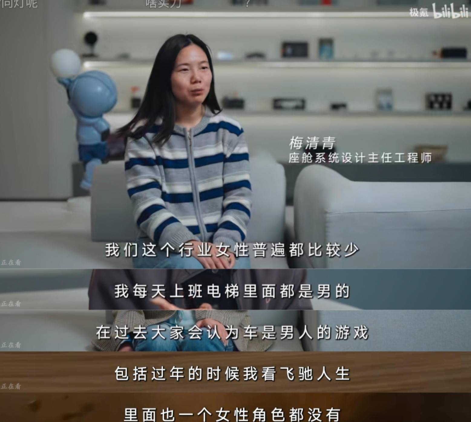 然而,视频中一位极氪女性工程师的表述却精准踩中了大众的敏感神经。她直言行业内女性偏少,“每天上班电梯里都是男的”,并以此类比没有女性角色的电影《飞驰人生》,试图以此来反衬女性在传统男性主导行业中生存与奋斗的不易。