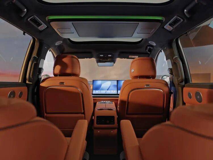 新车采用2+2+2的6座布局,第二排提供了带腿托的座椅,门板扶手上设置了无线充电区域,包括小桌板、吸顶屏、车载冰箱这些配置都有,二排有着堪比MPV的舒适性和配置表现。此外,新车配有原生AI智能体与VLA大模型,配合车顶激光雷达及多传感器硬件,实现全场景高阶智能驾驶辅助。