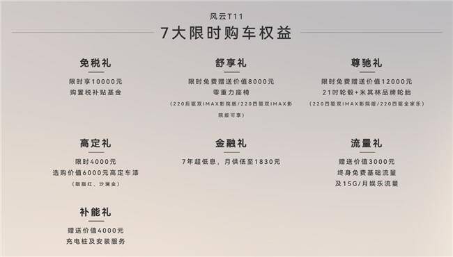 风云T11本次在三月推出的“7大限时购车权益”(活动时间:2026年3月31日前锁单并完成交车可享),进一步降低了豪华旗舰的拥有门槛,为春季购车家庭送上实在福利。