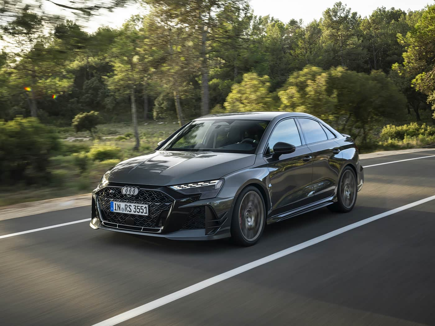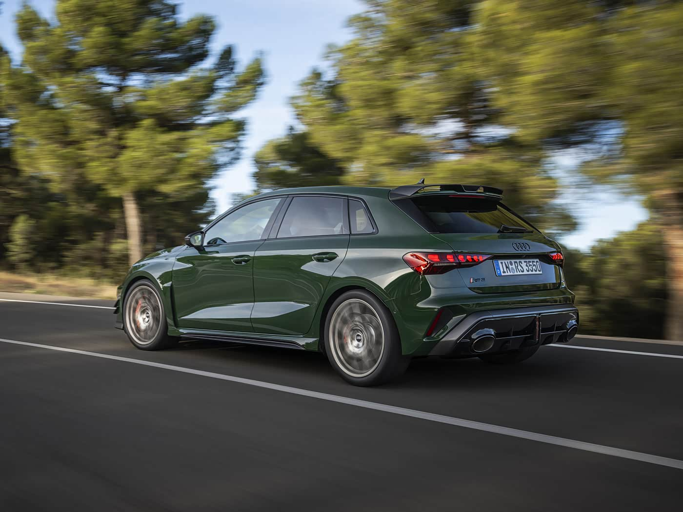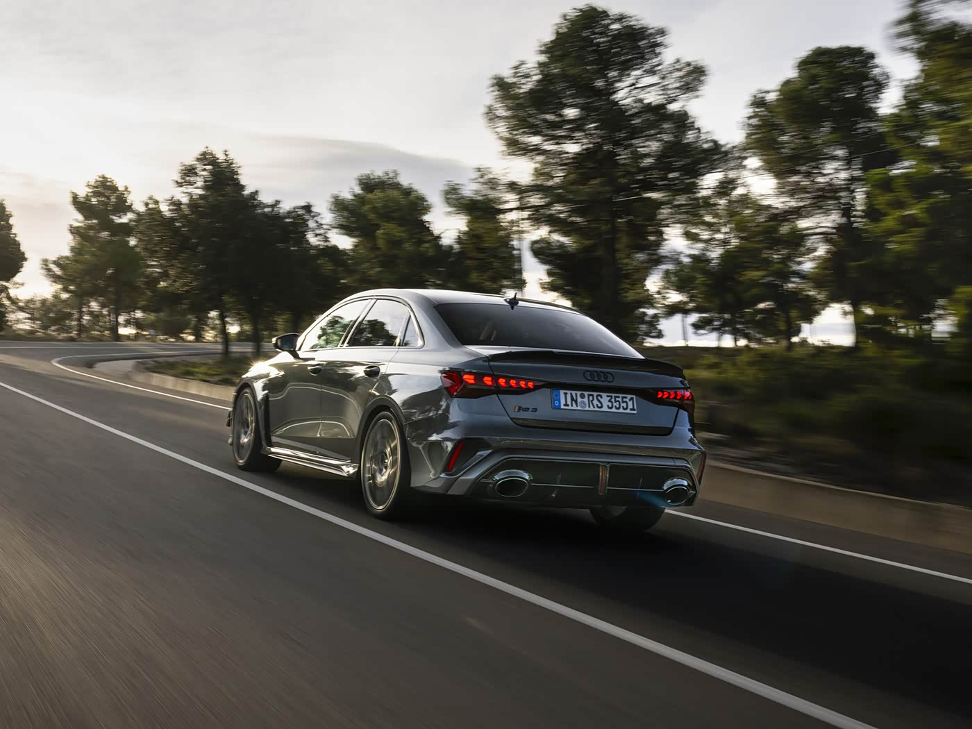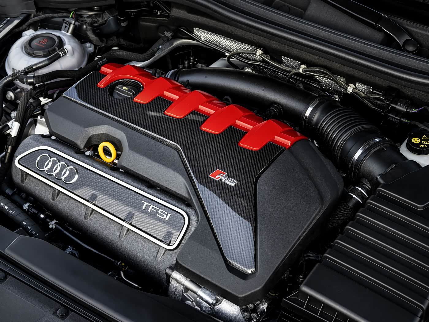 “1/2/4/5/3”是奥迪RS 3竞速限量版数字LED大灯的特殊设计,在接近车辆时,大灯会展示这组数字;其含义为该车发动机的点火顺序——没有错,RS 3搭载的是五缸发动机,是奥迪的特殊产物。该发动机拥有294kW的最大功率,超过奥迪A3改装拉力版的强化EA888;并且最大扭矩也达到500N·m,整体水平也超过一部分3.0T-V6发动机。与之匹配的变速器当然也要升级,是一台7挡湿式双离合变速器。并且车辆采用了Quattro四驱系统,虽然依旧是横置发动机平台,但是全时四驱的设定依然能让车辆的操控性能大幅提升。