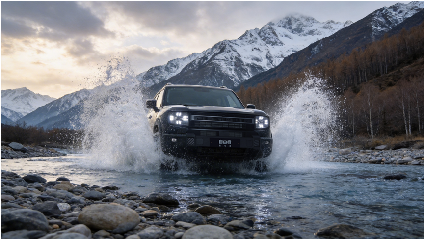 此外,捷途旅行者骏马版搭载“中国芯”十佳发动机鲲鹏动力2.0TGDI,车身扭转刚度31000N・m/deg,以铁马铮骨筑牢出行安全屏障;同时具备28°接近角、30°离去角及700mm涉水深度,以全路况高通过越野性助力用户从容跨越沟壑。捷途自由者骏马版最小离地间隙200mm、涉水深度700mm,笼式车身高强度钢占比80%、同级第一,为冲坡、涉水等越野场景提供高标准安全保障,让越野驰骋安心无忧。