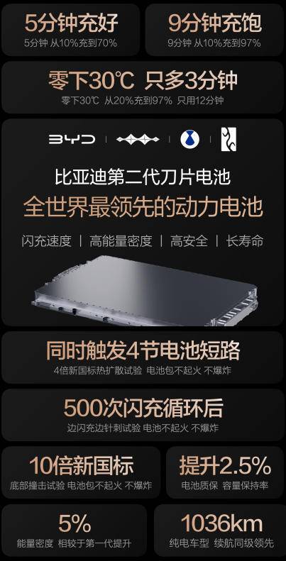 从第一代刀片电池捅破安全天花板,到第二代同时拿下闪充和寿命——电池大王还是那个电池大王。不玩虚的,只上硬菜。