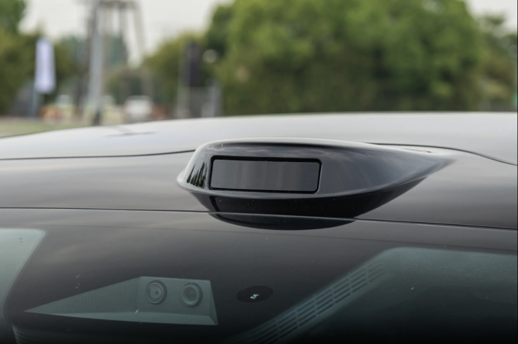 侧面造型流畅修长,前后轮拱突出车身表面带来强烈的力量感,悬浮式车顶与下方黑色侧裙线的组合,则有效降低了视觉厚度,浅色车身下效果尤为明显。并且还配备了电子外后视镜以及隐藏式门把手设计。此外,溜背式车顶在尾部逐渐收紧,与外扩的后轮拱相呼应,营造出低重心且稳健的视觉效果,后挡风中央的摄像头加上面积不大的后风挡,会给驾驶员带来一定的视野盲区。