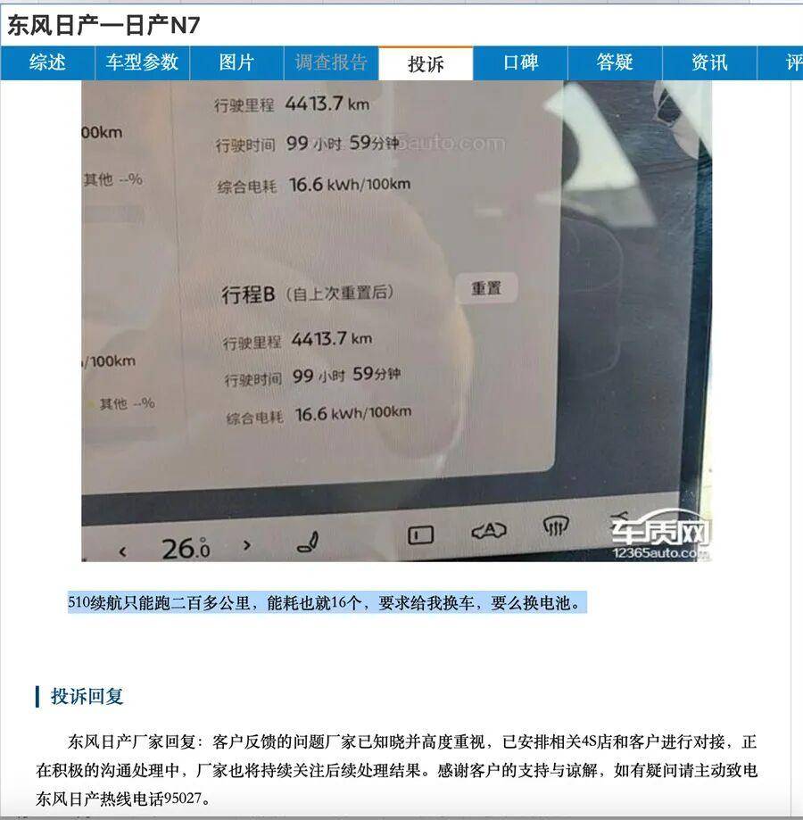 车质网中,出现一个案例,日产N7 2025款510 Max车主投诉,“东风日产N7续航里程严重衰退,动力电池故障”:“510续航只能跑二百多公里,能耗也就16个,要求给我换车,要么换电池”。这类投诉看似指向整车企业,但实则更像电池。据悉,东风日产N7所搭载的电池,电芯品牌正是欣旺达。