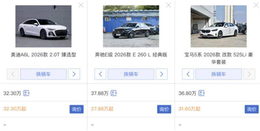 BBA集体官降,宝马5系指导价砍了7-9万,奔驰E级终端优惠动辄10万起步,奥迪更是直接把全新A6L的预售价打到了32.3万——比老款指导价低了整整10万。与此同时,蔚来、问界等一众国产新能源却呈现供不应求的状态。燃油豪华车看起来像是在打一场体面的撤退战。