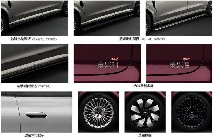 细节之处,该车使用了半隐藏门把手、贯穿式尾灯、B/C柱经过黑化处理,大尺寸的多条幅轮毂进一步强化了新车豪华气场。另外,从此前的申报信息来看,新车至少有3款轮毂样式,包括一款黑化轮毂,并且还提供电动踏板。