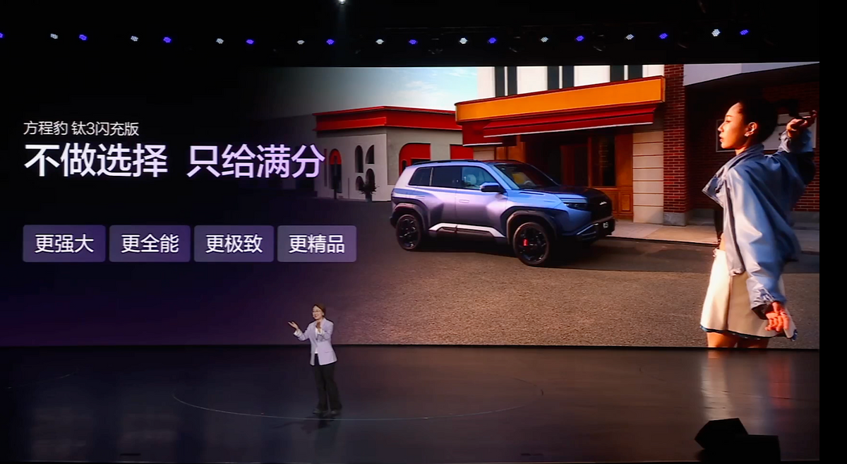 闪充站方面,今年将建成1.8万座“闪充站中站”,2000座闪充高速站,覆盖三分之一高速服务区,并且五一前建成首批1000座闪充高速站。此外,200座方程豹4S店已覆盖闪充服务。