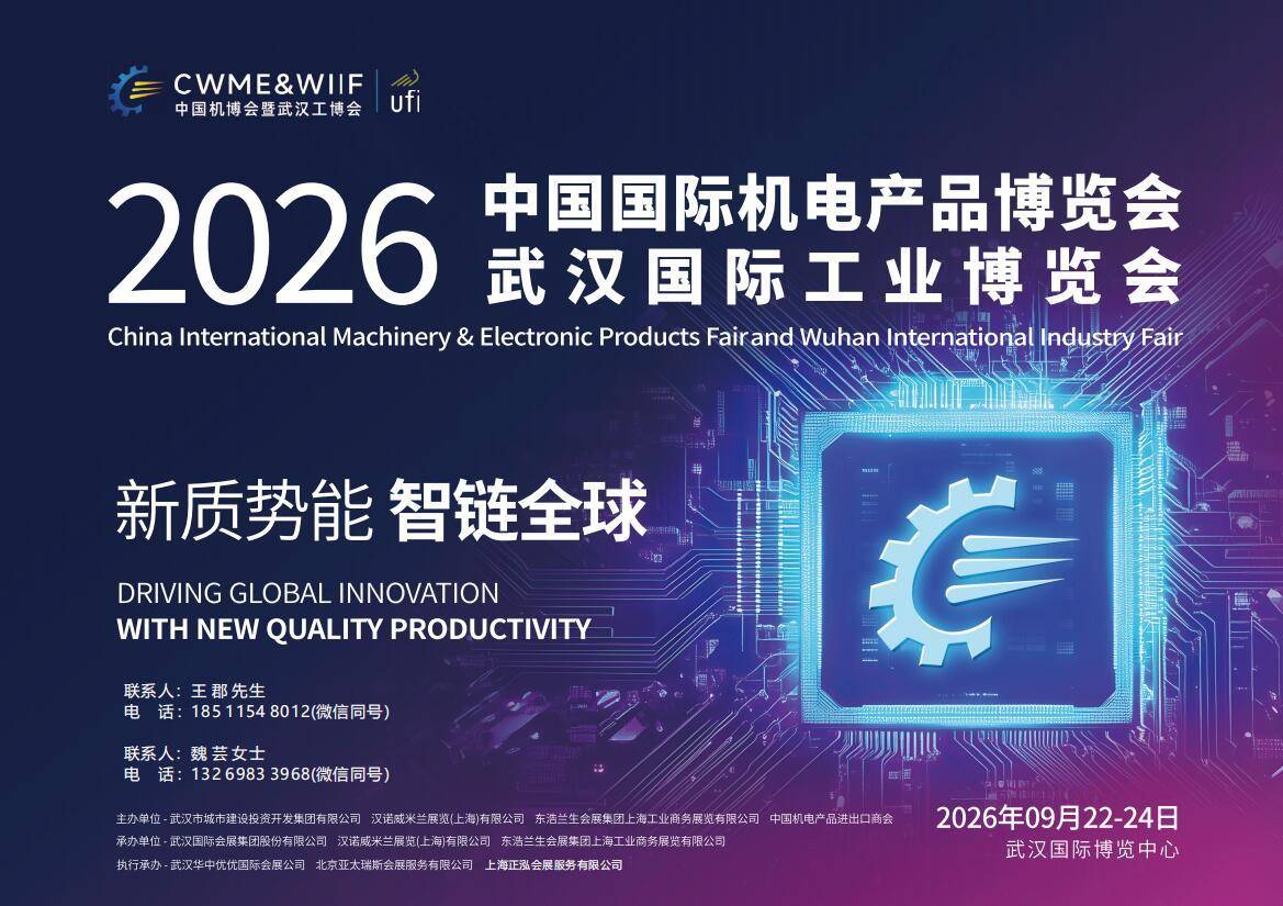 中国国际机电产品博览会暨武汉国际工业博览会作为装备制造领域最具权威性的展览会,将于2026年9月22日至24日在武汉国际博览中心举办第26届盛会。本届展览会以"数智赋能·绿色制造"为主题,全面展示新型工业化背景下的技术创新成果,为推动装备制造业高质量发展提供强有力支撑。