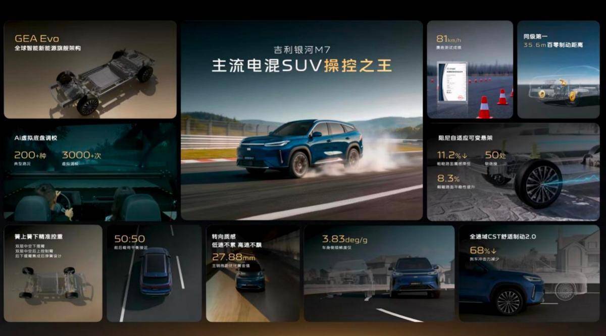 日前,吉利银河M7在吉曜通行衢州基地迎来产品技术首秀。作为吉利银河品牌M系列首款主流电混SUV,银河M7将首发搭载神盾金砖电池,纯电续航至高225km,同级最高;满油满电综合续航1730km,同级最长;麋鹿测试成绩81km/h,同级最快。