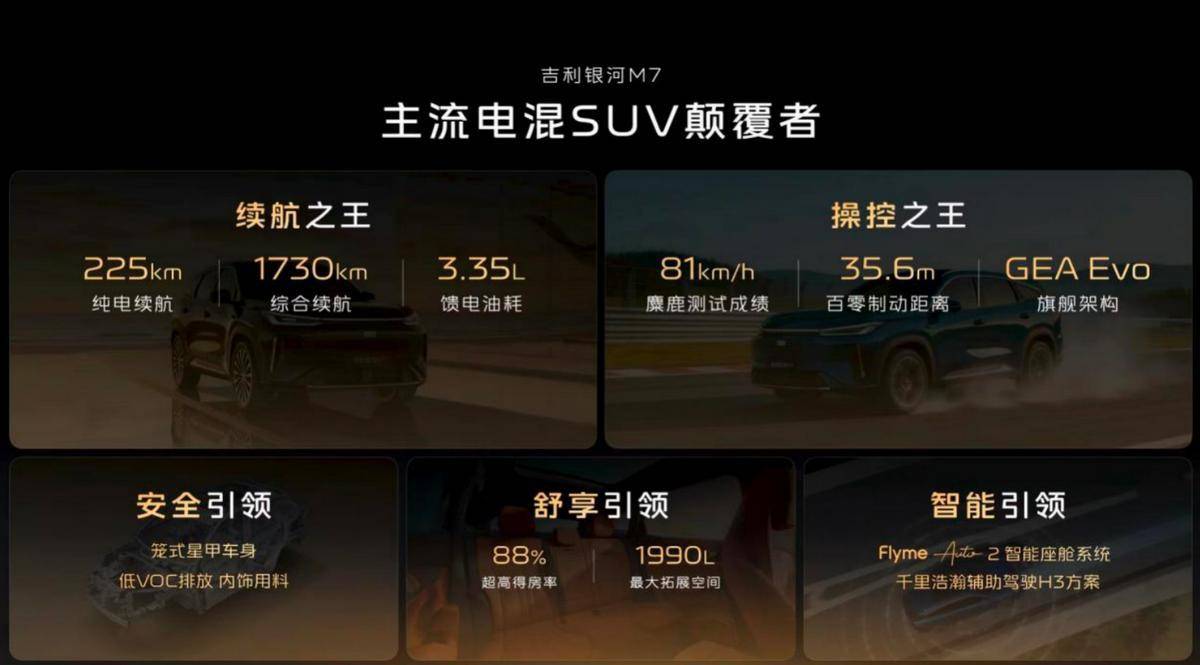 很明显,吉利银河M7以“中级 SUV 颠覆者”定位切入,通过更长纯电续航、更优空间表现与务实定价,精准匹配家庭用户的核心诉求。一方面,用“技术”叫板比亚迪,另一方面,吸引更多燃油车用户转向新能源。