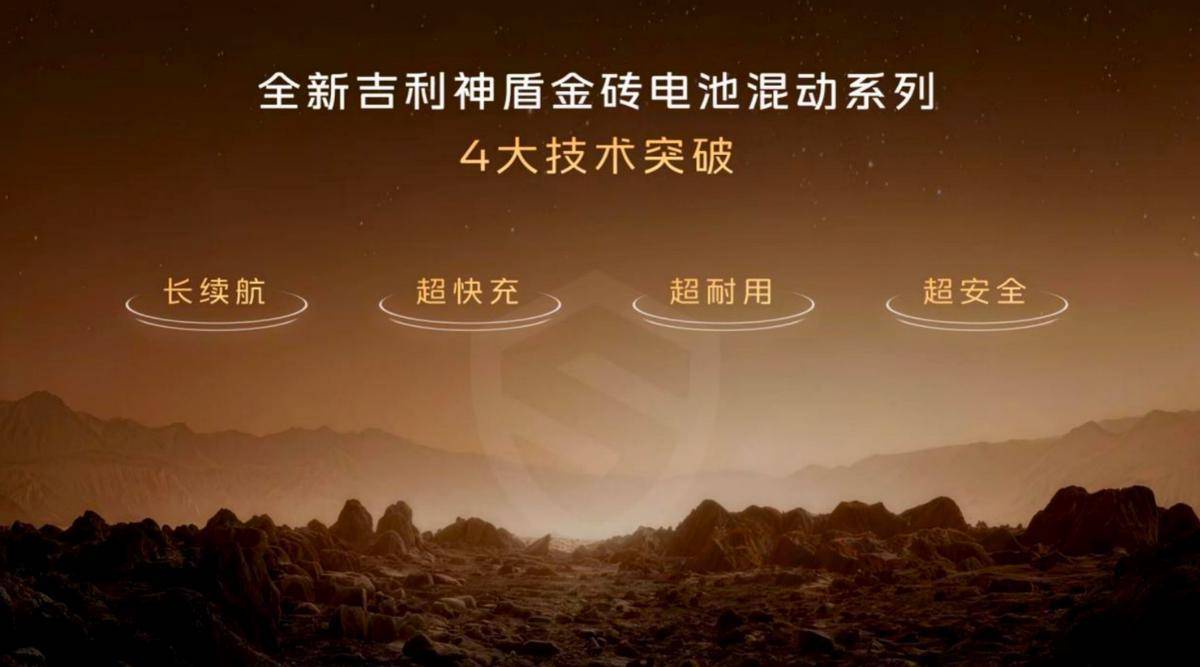 据吉利官方介绍,神盾金砖电池混动系列具备长续航、超快充、超耐用、超安全四大核心价值,通过更高电池容量与更高能量效率,带来同级领先的续航水平。