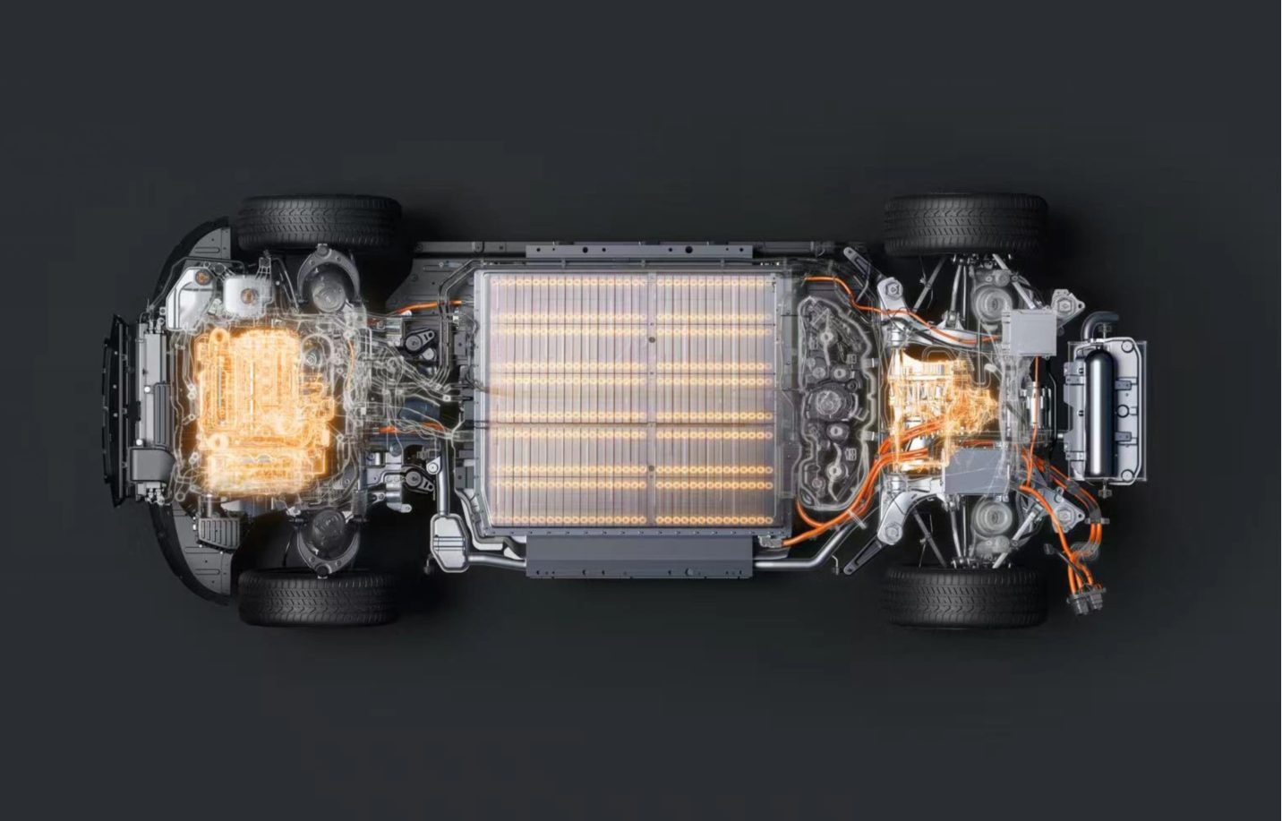 增程器使用1.5T涡轮增压发动机,最大功率100kW。车辆依靠电动机驱动,申报版本是四驱版;参数显示电动机峰值功率分别为100kW和200kW,但也有第三方平台显示前电机最大功率180kW,后电机最大功率230kW,总功率高达410kW;目前还是要以申报资料为准,只是不能排除该车有多个动力版本,甚至不排除有后驱版。