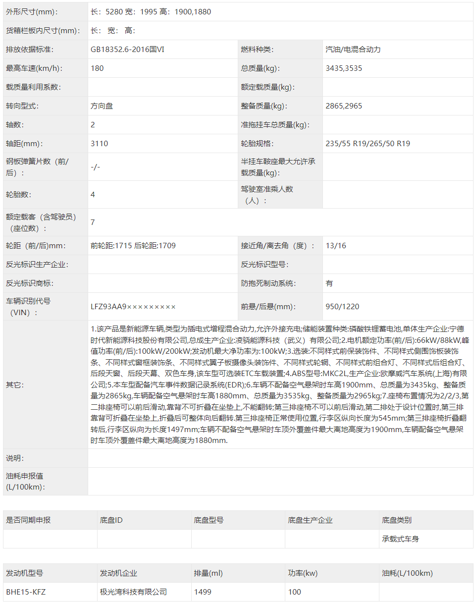 在第405批《道路机动车辆生产企业及产品公告》的资料中,零跑D99 MPV完成了申报;该车详细图片资料全部到来,包括内饰中的第三排座椅折叠方法,相当有趣。不过还是要先看基础参数,该车尺寸达到5280*1995*1900或1880毫米,轴距为3110毫米,属于中大型MPV;同尺寸竞品众多,比如魏牌高山、岚图梦想家、腾势D9、别克GL8 PHEV和同批申报的传祺M8 PHEV等车。