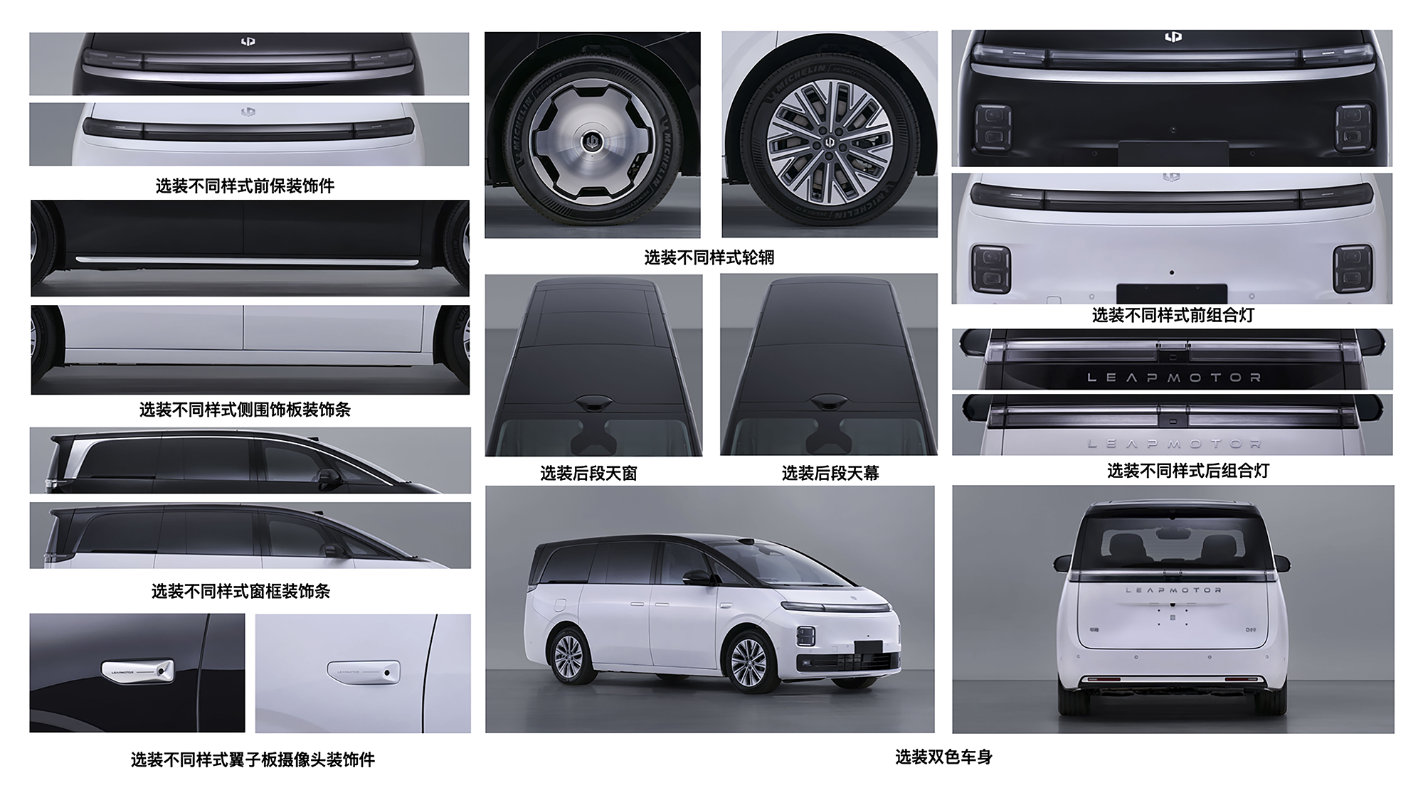 零跑D99的外观设计比较有趣,整车视觉效果饱满大气,但也有些似曾相识之感;比如车身轮廓线条有些比亚迪夏或腾势D9的味道,而车头的设计则更像是现代汽车的风格,大饼轮毂凸显出了厚重感,贯通式前照灯组带来了一些科技感,只是灯组的色彩仿佛有些极氪汽车的意思。当然这不是说零跑D99在设计上抄袭,算是集百家之长,基于MPV产品总是大同小异,所以其外观设计不会减分。