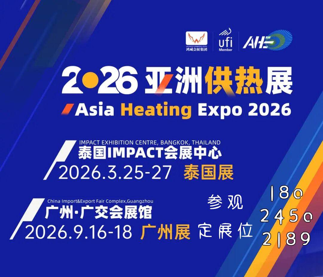 中国供热产业持续创新和技术进步,促进了供热行业良性的发展,为全面推广供热产业的应用,由广东鸿威国际会展集团有限公司主办的“2026亚洲供热暖通、热水、烘干、干燥及热泵、空气能产业博览会(AHE)”将于2026年9月16日-18日在广州广交会展馆隆重举办!AHE2026预计展览面积60000多平方米,将吸引1000多家参展商,以及来自国内外的80000多名专业观众共赴盛会。亚洲供热展不仅是国内外品牌拓展中国市场、布局全球网络的极佳营销渠道,也是供热领域众多企业发布年度新品、行业精英洞察贸易导向的重要窗口。