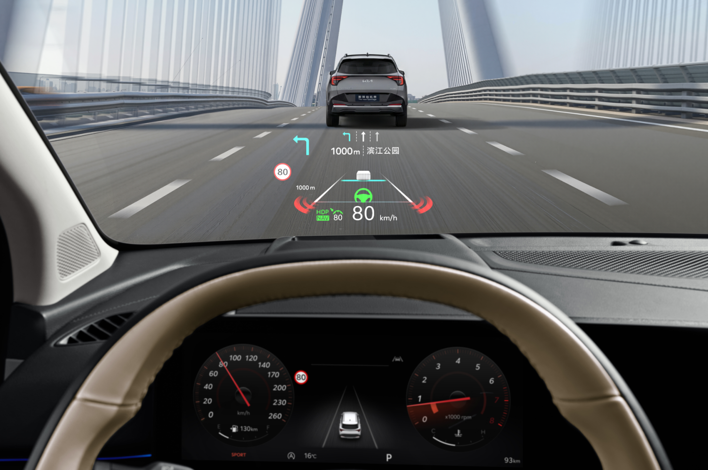 值得一提的是,起亚新狮铂拓界首次搭载11英寸HUD抬头显示系统,能有效减少驾驶视线转移,其最高亮度可达12,000尼特,即便在正午强光下依然可以清晰显示车速、道路标识和导航系统等关键驾驶信息,配合SVM全景显示与BVM侧后方影像,进一步扩大安全边界。新车还搭载起亚全新研发的智能IFS投射式大灯,照射范围更广、亮度更强,让用户夜间行车更安心。