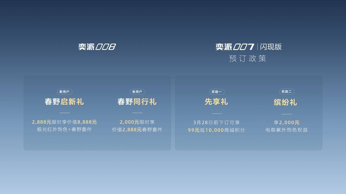奕派007闪现版与纳米01Cross同步首发亮相,以用户共创为驱动,为用户带来更多元的产品选择。其中,奕派007系列新增用户共创“电御紫”车色,兼具未来科技感与潮流时尚感。与用户共同打造的官方改装定制车型——奕派007闪现版定位“年轻人的梦想猎装轿跑”,外观采用俯冲式X凌厉前脸,配合三段式锋刀侧裙与棱光之环三辐轮辋,不仅强化了视觉冲击力,19寸轮辋和245mm宽胎赋予车辆卓越的抓地力;同时融入“猎装顶翼”经典轿跑元素,进一步拉长车身比例,带来更稳定的车身姿态。性能上,奕派007闪现版搭载冠军团队专业底盘调校,操控更出众。新车将于3月28日正式上市,且在此前预订,还可享受99元抵10000商城积分的“先享礼”和价值2000元“电御紫”外饰色权益的“缤纷礼”。