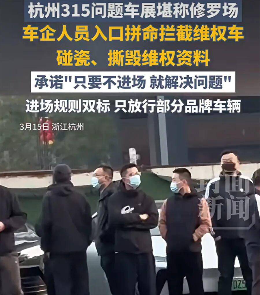有评论说,今年的315“只有鸡爪背了锅”。这话虽然调侃,却也戳中了一个事实:当大品牌从315彻底消失,当曝光名单里只剩下那些一眼假的老套路,消费者还能指望谁来守护自己的权益?广州杭州问题车展上的那些黑衣人、美女挡路、蒙车衣的骚操作,难道不正是汽车行业需要被敲打的证据吗?