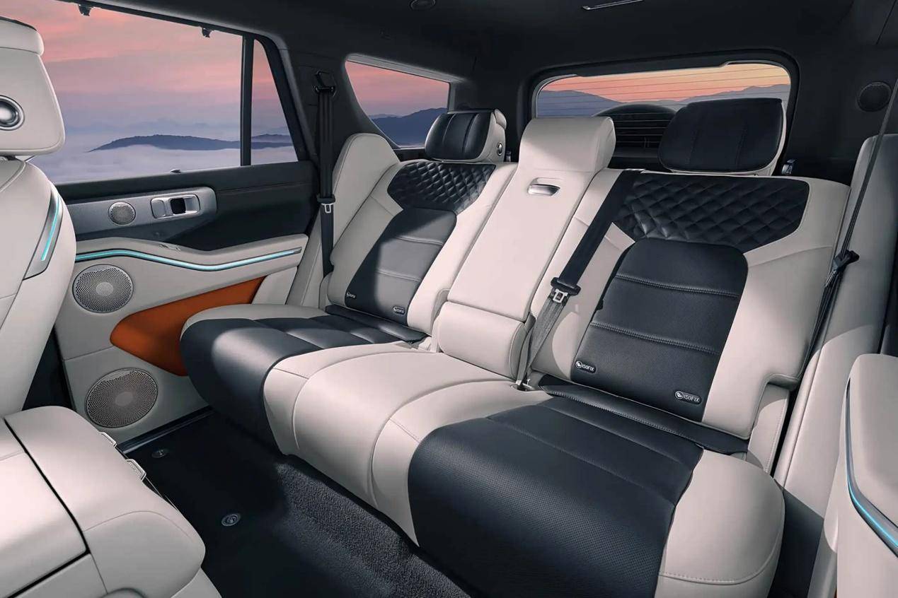 内饰方面的变化相比于坦克700 Hi4T还是有一些变化的,整体风格是比较接近的。有这么几个变化,首先就是换挡杆从之前的游艇风格变成了怀挡结构,怀挡结构的换挡杆能够为中控腾出空间,同时换挡也比较便利。虽然很多人觉得这样的设计不够硬核,但是对于坦克700 Hi4Z这样以城市以及长途穿越为主的车型来说,豪华和舒服才是第1位的。其二就是为后排增加了一个吸顶的屏幕,所以后排的娱乐设备要更加丰富。第三是增加了冰箱,冰箱沙发大彩电齐活了。也能够看到它的重点是偏向于后排的,这就更加验证前面的说法,他是为了4~5个人舒服的长距离出游所准备的车型,并非真正意义上的完全体越野车。到了路况相对比较恶劣的路段,那它的越野能力比目前的所有轻越野车都要更强。
