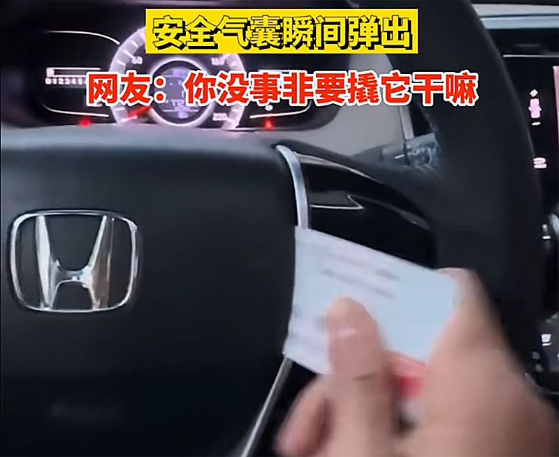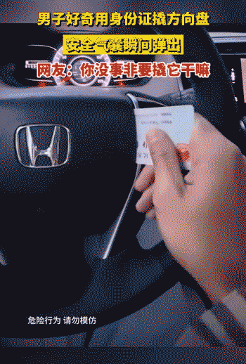 读者转发一则视频,内容很有意思;在视频中一男子用身份证沿着方向盘中间的安全气囊总成的缝隙撬动,结果撬着撬着就把安全气囊撬爆了。