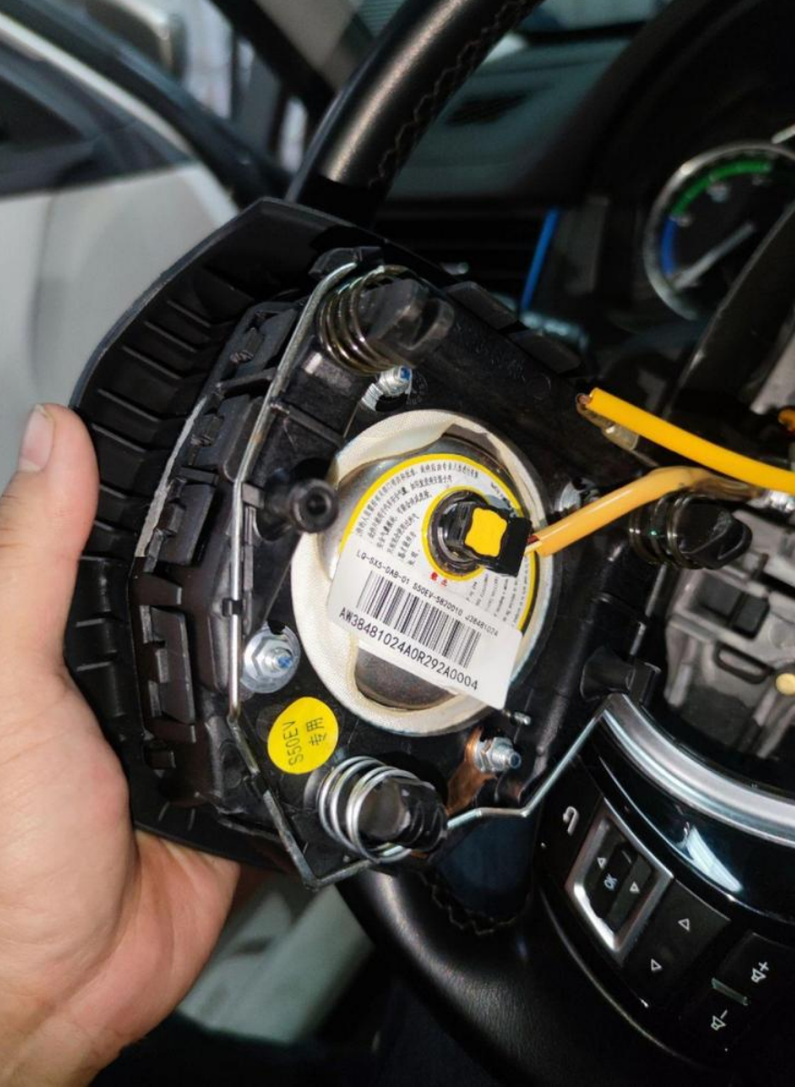 那就不妨来看一看方向盘上的安全气囊总成的样子吧。