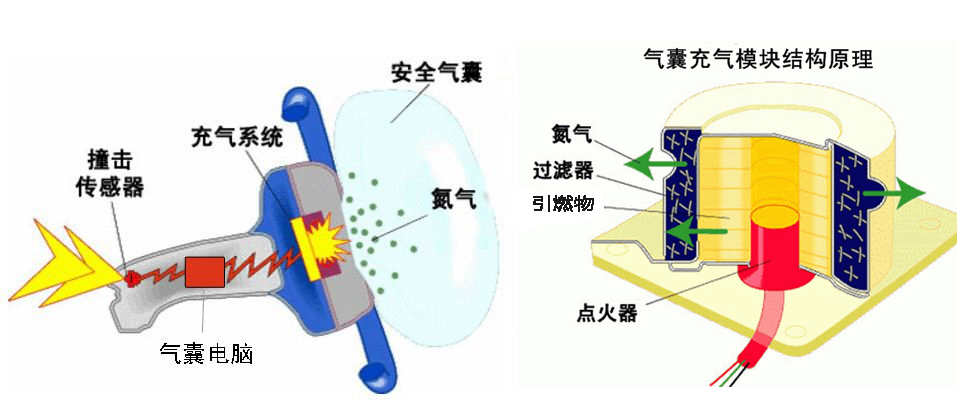 安全气囊的瞬间填充依靠的就是氮气瞬间大量的出现。