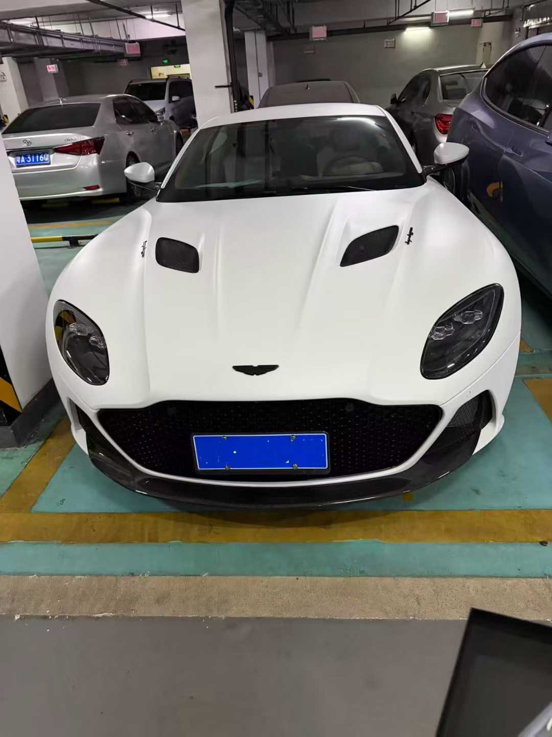 不敢草率。有人说,一台车不开,等于废铁。可他们不懂,有些东西生来就不是为了“使用”,而是为了“存在”。这台DBS,里外全碳。外面的碳纤维纹路在灯光下像某种古老生物的骨骼肌理,原厂的灰色油漆覆在上面,不是遮,是衬——像一层薄雾罩着山脊。里面的碳就更疯了,整个座舱像坐在一具被解剖的猛兽胸腔里,每一根肋骨都裸露着,提醒你:这不是舒适的地方,这是力量的原乡。