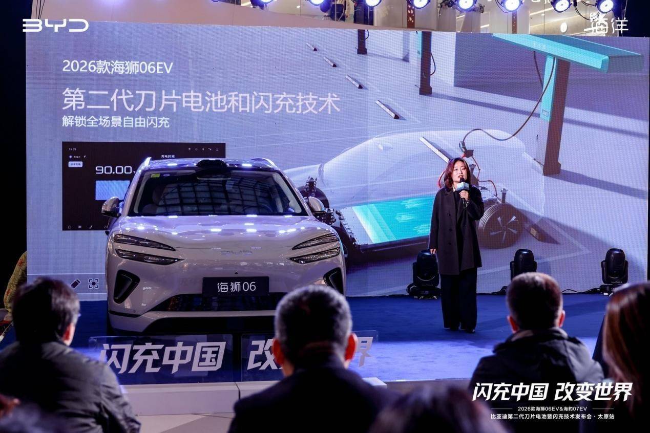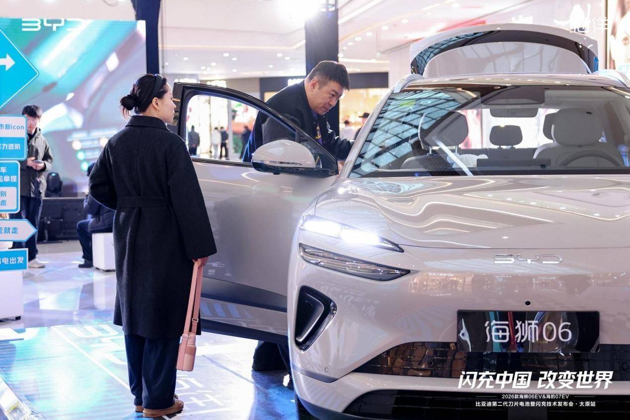 据《汽车商评》了解,近日比亚迪第二代刀片电池暨闪充技术发布会来到了太原站,除了介绍第二代刀片电池之外,比亚迪还顺势上新了两款使用这一技术的新车——2026款海狮06EV,上市指导价15.99-17.99万,海狮07EV,上市指导价16.99-18.99万。