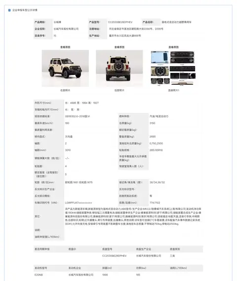 最后说说动力单元,全新坦克300此次申报仅有Hi4-Z和Hi4-T两款插混车型,燃油车型并未申报,未来是否推出暂时也无法确认。两套动力单元均搭载2.0T发动机,最大功率185kW;Hi4-T车型搭载37.1kWh三元锂电池组,纯电续航据申报信息显示为105km;Hi4-Z则匹配容量更大的59.6kWh三元锂电池组,申报信息显示纯电续航增加到200km。