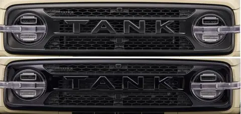 实际上,这次全新坦克300虽说整体的变化还是较为明显的,但只凭咱们肉眼来看,除了整体的“加长”外,并没有更多的变化。根据申报图来看,全新坦克300依旧采用经典的方盒子造型,方正硬朗的车头造型配合夸大的轮眉,加上分体式保险杠的加持,硬派表现依旧明显,前格栅也换装了全新的样式,内部采用大尺寸英文字标的搭配,看上去还是较有视觉冲击的。