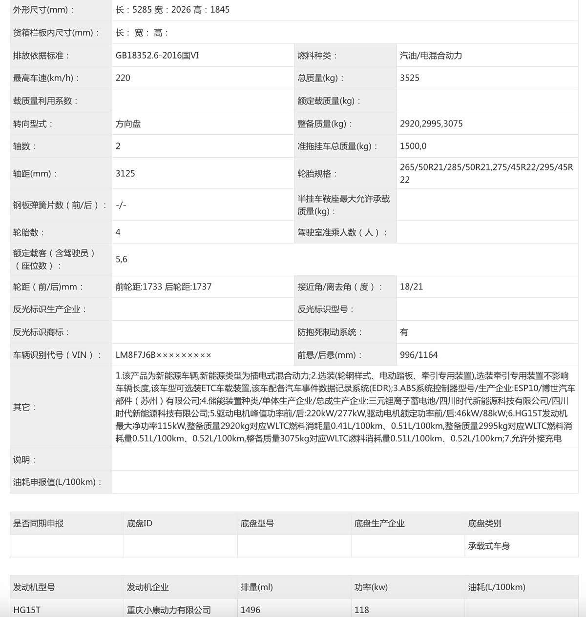 动力方面也是大家比较关心的地方,先看增程版,它的单电机版最大功率为118kW,采用三元锂电池,申报纯电续航为250km、255km、265km、315km、320km和335km,比现款车型续航更长。纯电版的动力也有升级,前/后电机分别为220kW和277kW。