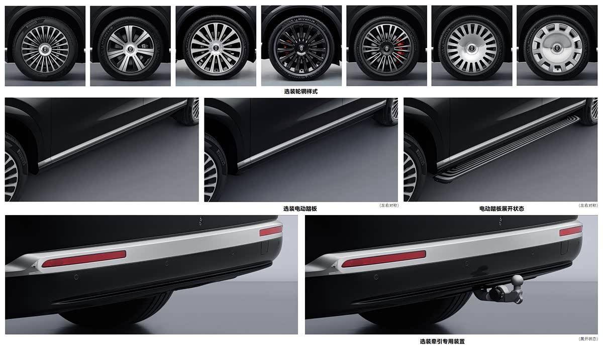 侧面的看点毫无疑问就是门把手,新车换装了尊界S800同款的星光门把手,看上去非常高级。另外就是第三排车窗增加了一处摄像头,大家可以期待一下它的功能。尺寸方面,新车的长宽高分别为5285/2026/1845mm,轴距为3125mm。和现款车型相比,新车长、宽、高和轴距分别增加了55mm、27mm、45mm和15mm。